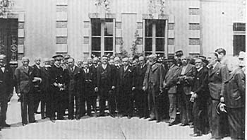 Retour Inauguration du château d'eau en 1937.Les personnalités devant la mairie: Jean Zay, Edouard Herriot, Marcel Donon,Dr. Dezarnault, M. Pommier (maire), M Cabanis (député).